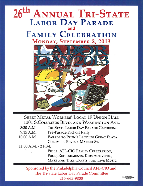 Standing solid against the political and social forces intent on devaluing workers is the job of every union member and every member of every working family. Please plan to attend The Philadelphia Council AFL-CIO’s 26th annual Tri-State Labor Day Parade and Family Celebration.