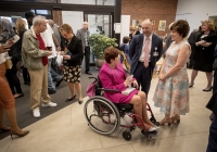 ELKINS PARK, PA, April 13, 2018 – State Sen. Christine Tartaglione took her first steps in 18 months on Thursday evening as she helped MossRehab honor two of her fellow patients while opening the facility’s annual All About Art exhibition, featuring dozens of works by professional artists with physical disabilities.